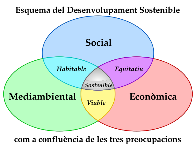La sostenibilitat consisteix a proveir el millor possible avui sense posar en perill els recursos de demà, és a dir, exactament evitar el que la cultura popular en castellà anomena pan para hoy y hambre para mañana (pa per avui, fam per demà), aplicat en el sentit més ampli i a tota mena de recursos: econòmics, materials, humans, socials i ambientals. L'Informe Brundtland de 1987 ho defineix tècnica i oficialment com a "satisfer les necessitats de la generació actual sense comprometre la capacitat per satisfer les necessitats de les generacions futures.